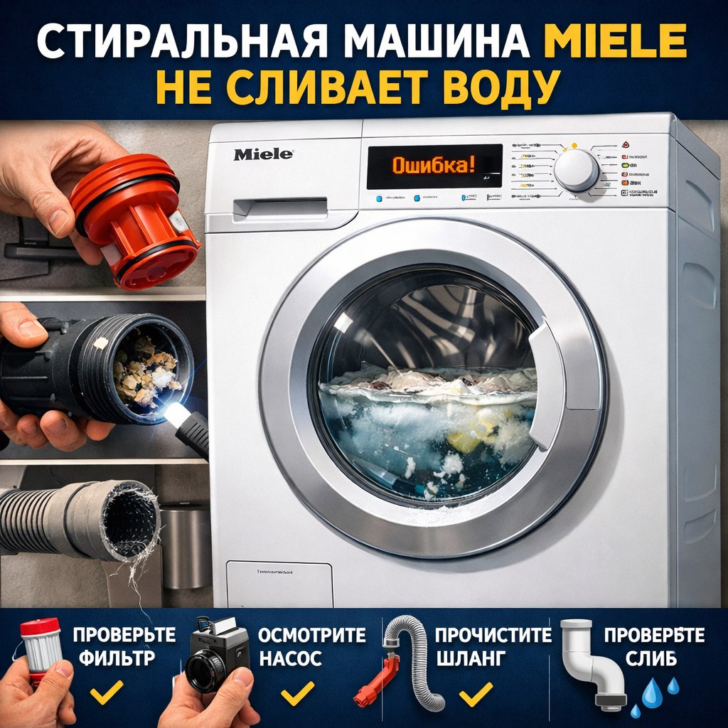 Признаки того, что стиральная машина Miele не сливает воду: